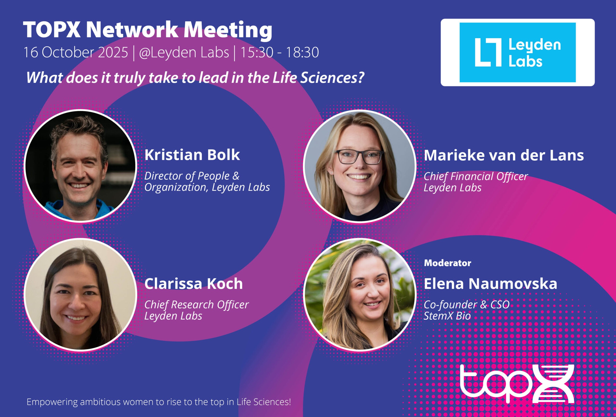![]() Join the TOPX Network Meeting on October 16 at Leyden Labs for a session featuring the new EU Pay Transparency Directive with Kristian Bolk, followed by a fireside chat with CFO Marieke van der Lans and CRO Clarissa Koch. Hear candid stories, leadership lessons, and practical advice on building a successful and fulfilling career in Life Sciences. |
